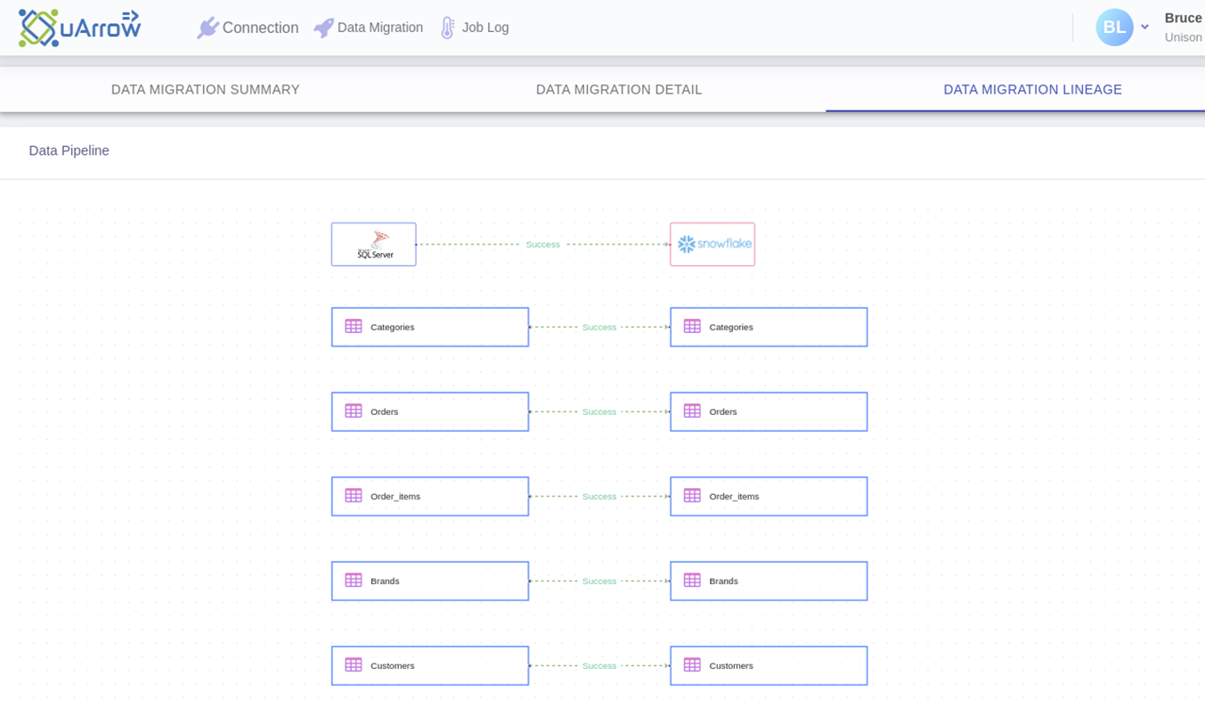 uArrow DM is a completely new product built using our experience in data migration activities. Provide real-time monitoring, data lineage graph, job statistics and view detail logs